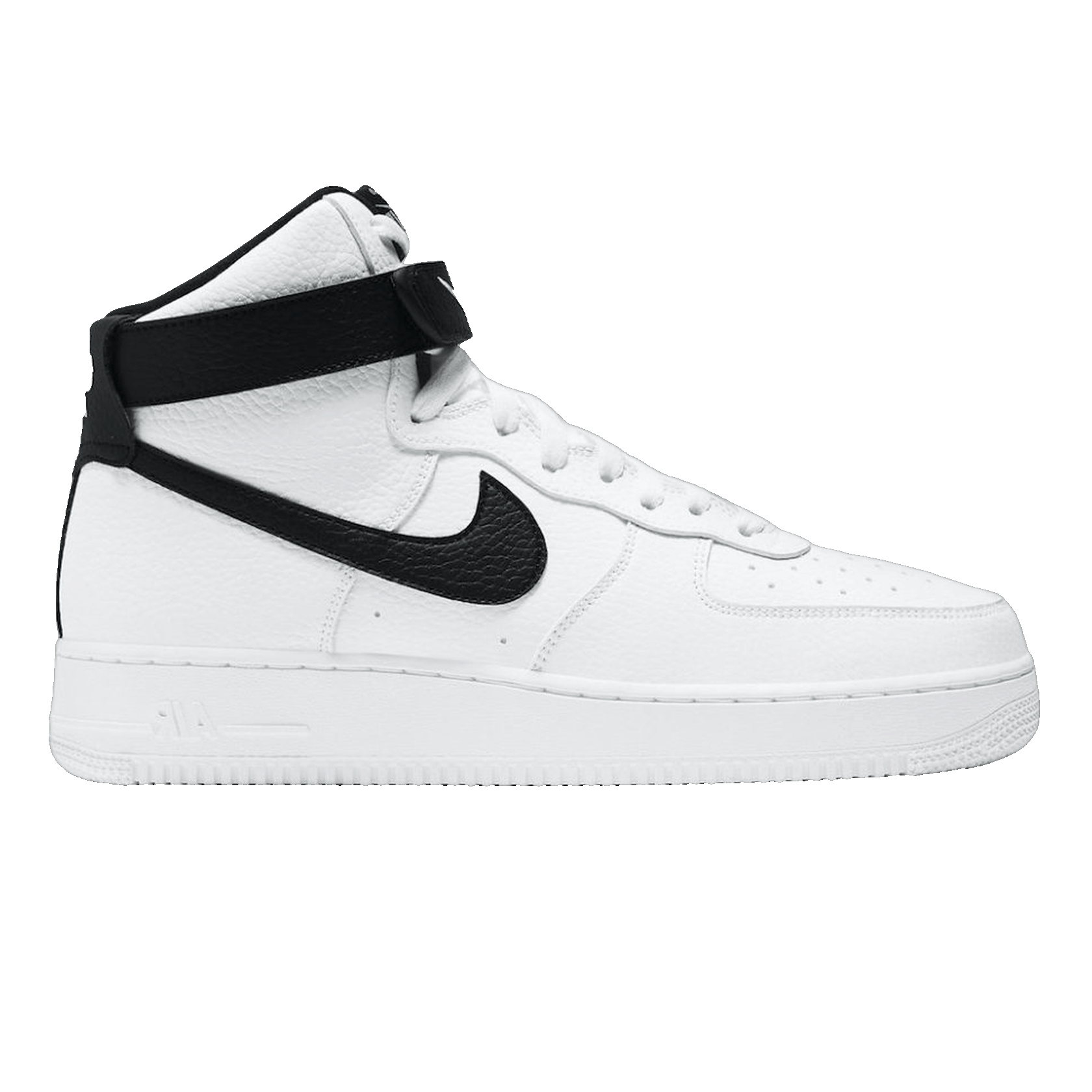 The Nike Air Force 1 High '07 White Black impresses with its clear contrasts and minimalist design. The white base is complemented by black details, creating a sporty, timeless look. Its high silhouette also provides stable support and comfort.